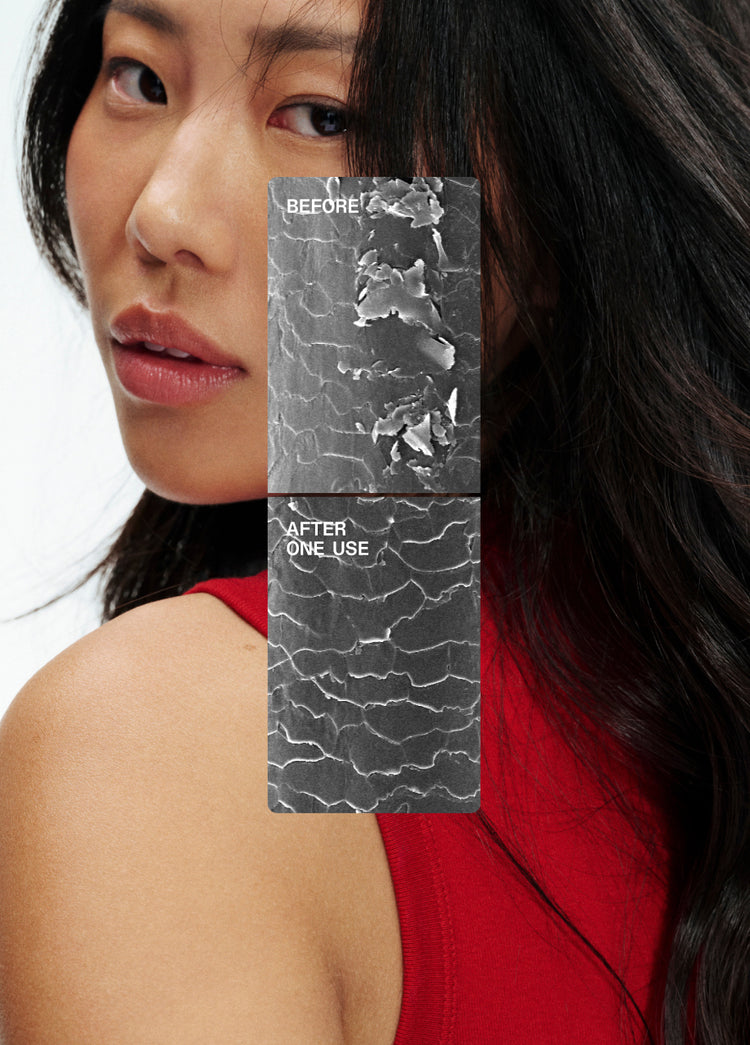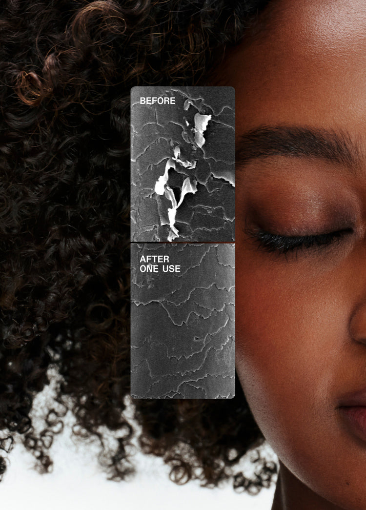Results achieved by treating hair with Nº.3PLUS Complete Repair Treatment, then cleansing with Nº.4 Bond Maintenance® Shampoo, and conditioning with Nº.5 Bond Maintenance® Conditioner.